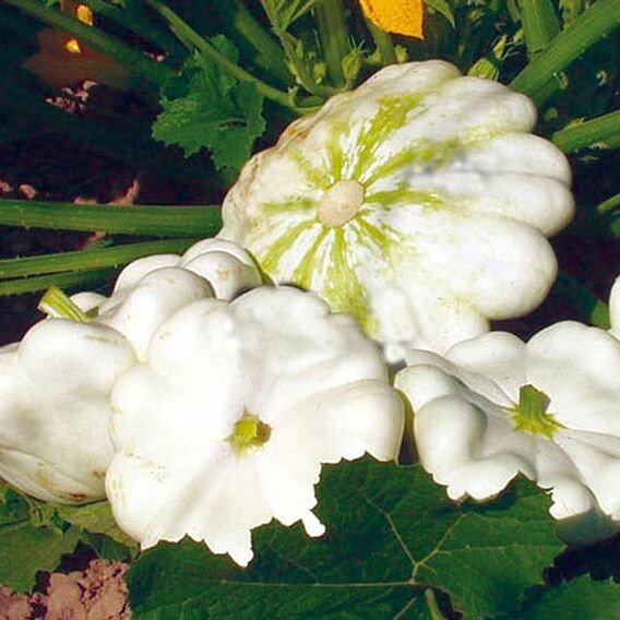 Классические патиссоны чаще всего имеют белую окраску. Это скороспелые сорта: на 30–40 день после появления всходов можно снимать первый урожай. Один куст способен дать до двух десятков плодов массой до 1,5 кг. Они устойчивы к похолоданиям, что делает их идеальными для умеренного климата.