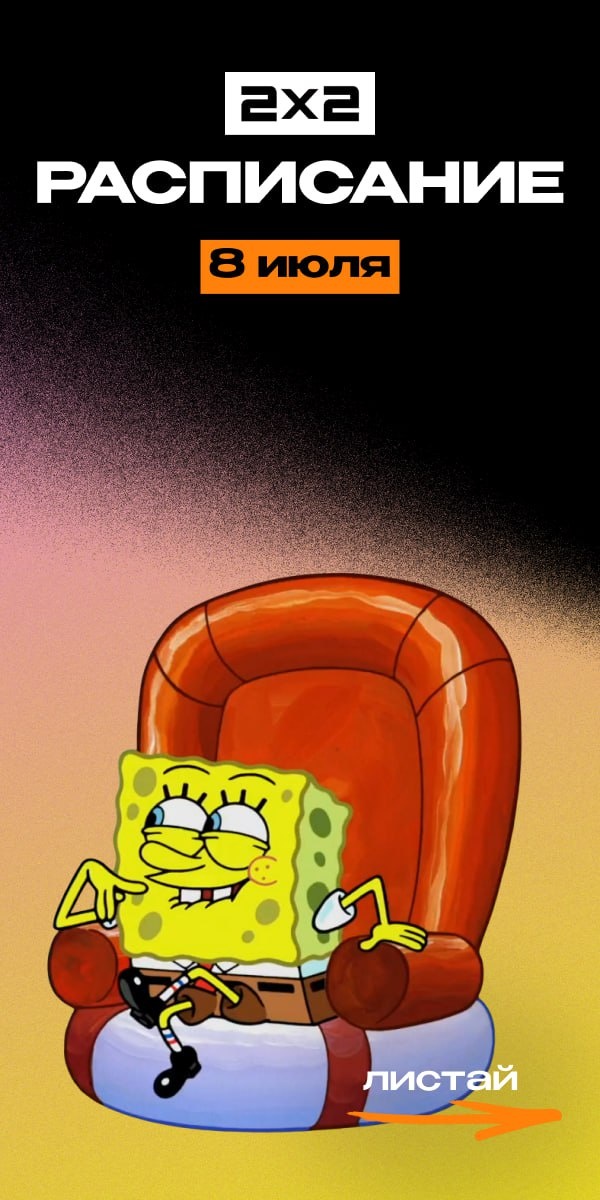 Губка Боб, кажется, что-то задумал. Присоединяйтесь к неугомонной губке и другим героям — в эфире 2х2