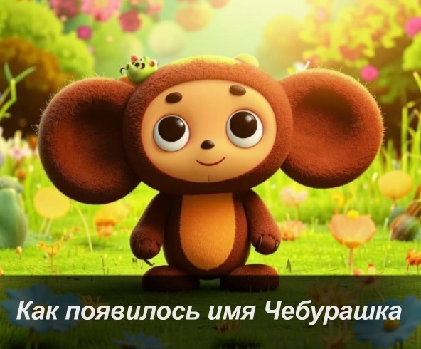 Имя Чебурашка образовано от глагола «чебурахнуться», т. е. «упасть», а также «удариться, стукнуться». Подтверждение этому можно найти в книжке Успенского: "Я принёс его в магазин, посадил на стол, а он – фьють! – и чебурахнулся со стола на стул. Я его опять посадил, а он опять чебурахнулся. Так я раз десять его сажал, и каждый раз он чебурахался! Ну, я и сказал: «Да что это за Чебурашка такой!» Успенский утверждал, что слово «чебурахнуться» он услышал в детстве от своих родителей, которые так называли что-то, что с грохотом падало. Однако, согласно другим источникам, это слово было широко распространено в северных русских говорах и обозначало деревянный шар, используемый в качестве поплавка для рыболовных сетей. Этот шар, будучи плохо закрепленным, мог легко «чебурахнуться» в воду. Интересно, что первоначально Чебурашка в книге Успенского был описан как зверёк неизвестной науки, обитающий в тропическом лесу. Он случайно попал в ящик с апельсинами и прибыл в город. Его необычная внешнос