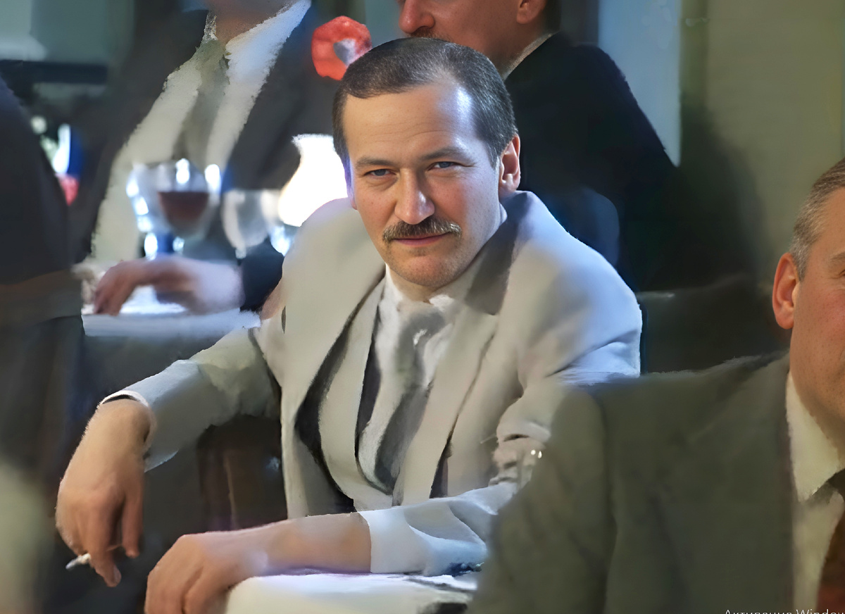 -Камера! Мотор,- прокричал режиссер, и в это мгновение я увидел, как в «ресторан» вошел импозантный мужчина выше среднего роста. Это был мой кумир! Это был Леонид Филатов…. Перед глазами пронеслись все фильмы с его участием, и я понял, что на этот раз мне посчастливилось крепко ухватить птицу удачи. Метрдотель лет шестидесяти пяти, с седой бородкой, в черном смокинге, в белых перчатках, и шелковой белой сорочке с белой атласной «бабочкой» по сюжету кино, встретил дорогого гостя широкой улыбкой. Он деликатно пригласил полковника Крафта за столик перед самой камерой, где в это время там мило «беседовали» Донатас Банионис и Гражина Шаполовская. Увидев Филатова, компания оживилась. Леонид Алексеевич поздоровавшись, с коллегами и артистично плюхнулся на стул, показывая окружающей публике свою статусную значимость.
