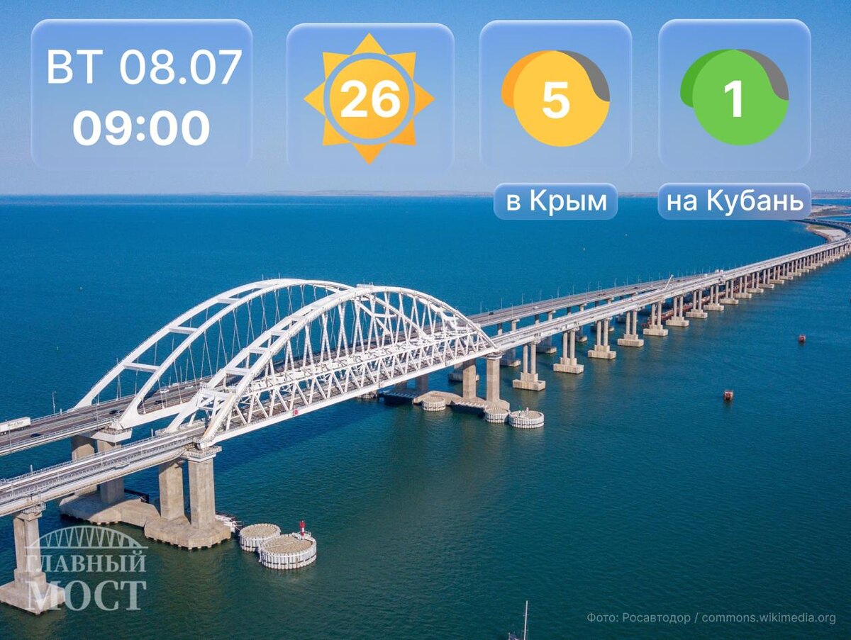Утро в пути... 🔹Со стороны Краснодарского края в очереди на досмотр 538 авто - время ожидания около 2-х часов. 🔹 Со стороны Крыма небольшое скопление авто в зоне досмотра. Кто уже прибыл - скиньте пару кадров с морского побережья 🙂 Главный мост | Подписаться