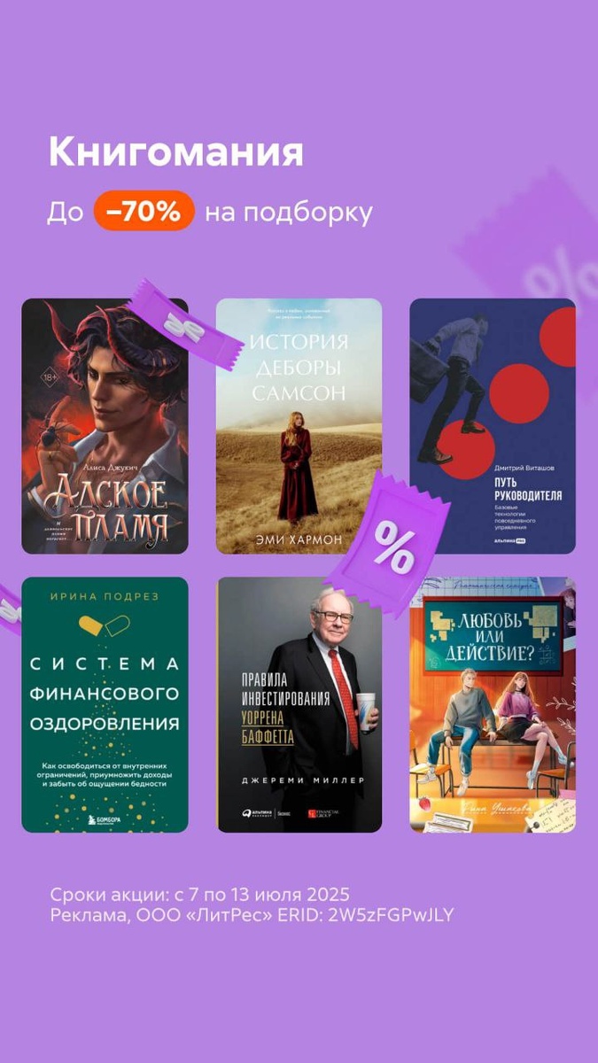 До 13 июля вас ждут скидки до 70% на подборку лучших книг на сайте Литрес!