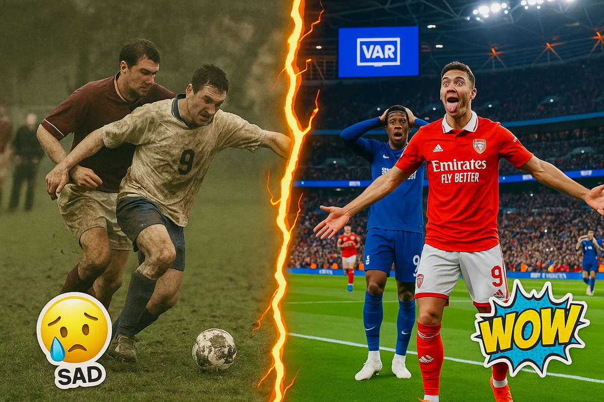 Всё стало круче? Или мы потеряли душу футбола? Когда мой отец смотрит матчи сейчас — он плевался бы. Реально! Он вообще не понимал бы, зачем человеку на поле планшет, а судье — гарнитура в ухе. А мой племянник — тот вечно в TikTok — не понимает, как это раньше “не было VAR” и почему все ржут с мемов про Дзюбу. — “Вот, раньше были времена! На поле траву ели, в кровь, до последней секунды!”