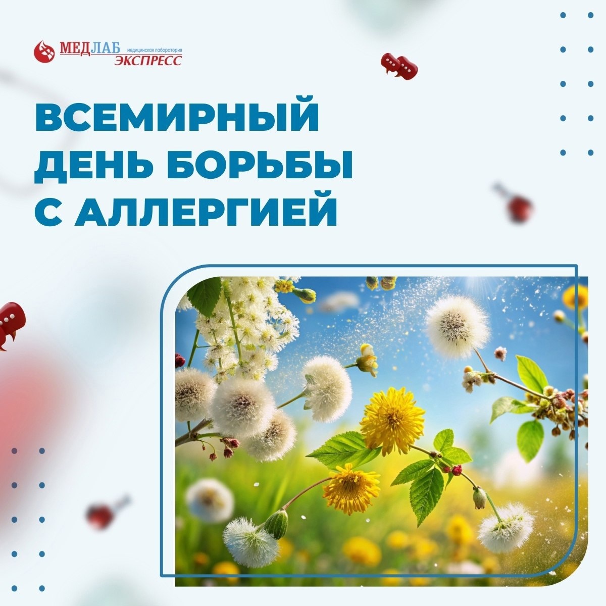Сегодня, 8 июля, ВОЗ проводит Всемирный день борьбы с аллергией.🌺 По данным статистики - треть взрослых жителей России и четверть детей страдают от аллергии. Аллергию могут вызывать клещи, насекомые, пыльца растений, консерванты, красители пищевых продуктов, фармацевтические средства, животные, промышленные выбросы. Для противодействия процессу применяют антигистаминные препараты. Недуг провоцирует головные боли, бессонницу, снижать память и познавательные способности. От него страдает эндокринная и нервная системы. В нашей лаборатории «МедЛабЭкспресс» вы можете выявить свои аллергены с помощью анализов. Перечень можно подобрать на нашем сайте