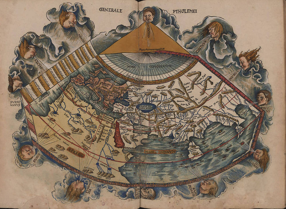 Клавдий Птолемей жил во II веке н. э. в Александрии, тогдашнем научном центре античного мира. Он собрал и систематизировал знания о звёздах, планетах и, конечно, о Земле. В своей книге «География» Птолемей описал более 8000 топонимов и предложил систему координат для построения карт, что было революционно для того времени.