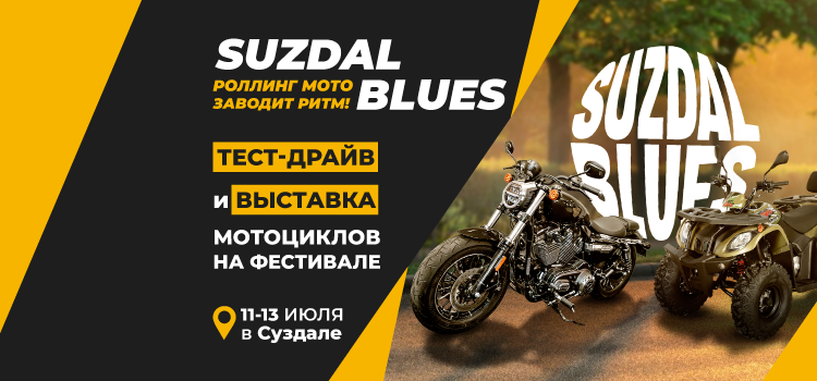 Приглашаем провести три ярких летних дня на живописном берегу реки Каменки в отличной компании! 11-13 июля пройдет легендарный рок-блюз-мотофестиваль SUZDAL BLUES! Фестиваль проводят уже 17 лет подряд! И в этом году событие приурочено к юбилейной дате – 140 лет мотоциклам! А значит, нас ждет много приятных сюрпризов от организаторов. Будем слушать лучших блюз-рокеров страны и мира, наслаждаться общением и полностью растворяться в неповторимой атмосфере, которая рождается, когда мотоциклы и хорошая музыка соединяются вместе. Для гостей фестиваля выступят Моральный Кодекс, Группа Федулова, Fedor Kruglov Blues Band, Join Trip (Куба) и другие звёздные артисты. Для мотоледи на мотоциклах вход свободный! В этот раз Роллинг Мото проведет на фестивале тест-драйв мотоциклов! Вы сможете лично испытать круизеры GROZA, мотоциклы Zontes, Cyclone и внедорожную мототехнику KAYO. Адрес мероприятия: г. Суздаль, ул. Коровники, д. 45, главный туристический комплекс. Подробности и билеты: [SUZDAL BLUES 2
