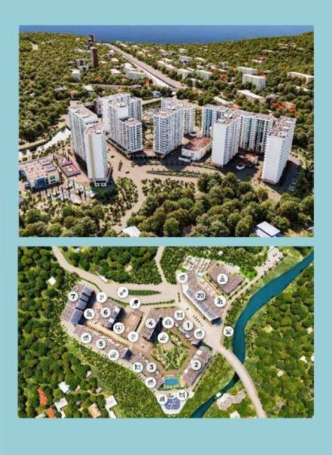 На это стоит обратить внимание. Комплекс в локации - которая удобна для туристов на своих автомобилях. Не надо долго мучиться и ехать по серпантину в Сочи. Свой пляж и свой вайб на берегу. Ощущение - что ты в Крыму 😄в окружении гор и тихая лагуна .