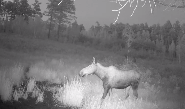 Ночную прогулку лосихи запечатлела камера в Шимановском округе