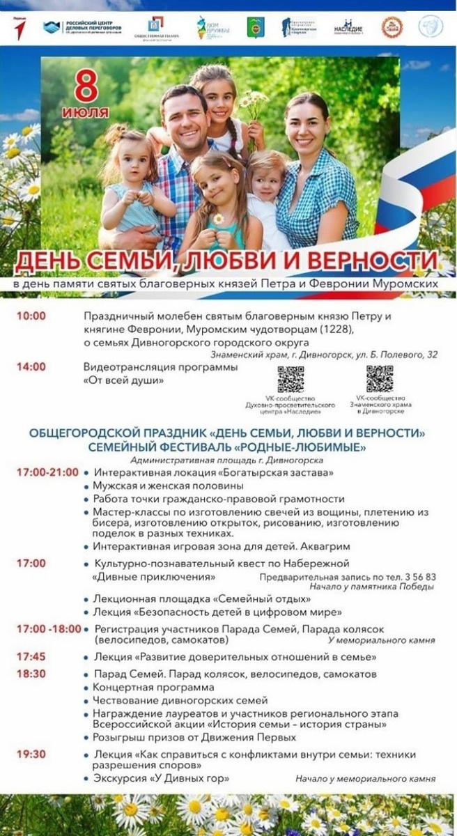 📅 Сегодня 8 июля состоится общегородской праздник День семьи, любви и верности