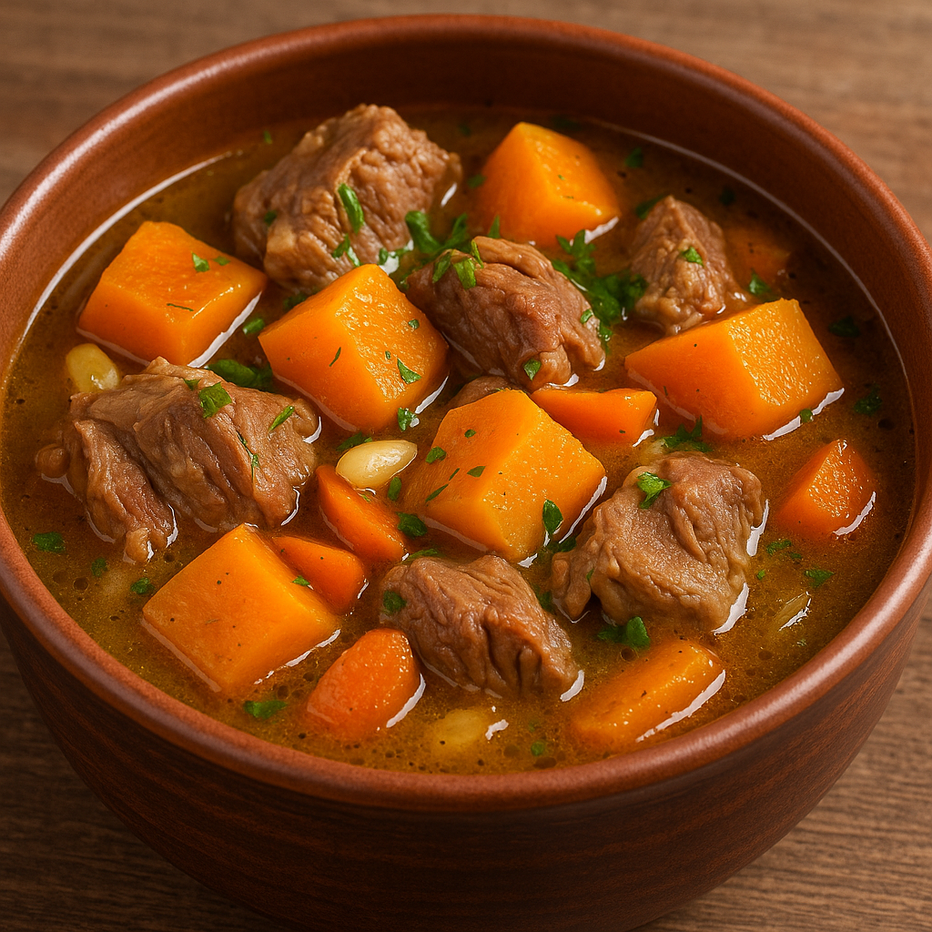 🍲 Баранина с тыквой по-чеченскиЭто блюдо обычно готовится на открытом огне или в толстостенной кастрюле (казане). Оно подходит для холодног
