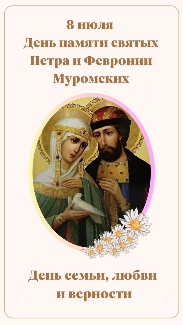 ☀️ В этот светлый День семьи, любви и верности поздравляем вас, дорогие друзья, с праздником, который вдохновляет на крепкие и искренние отношения, основанные на вере и взаимном уважении! ❤️✨ 🖼 Листайте карусель, ведь в ней — история святых Петра и Февронии, чья жизнь стала примером настоящей любви и преданности, именно ко Дню их памяти приурочен праздник. Познакомьтесь удивительной судьбой этих святых. И не забудте подписаться на нашу группу ☀️ #СеверноеБлагочиние #Миасс #Россия #Семья ----- Сообщает: Миасское северное благочиние 🫛Миасс Православный