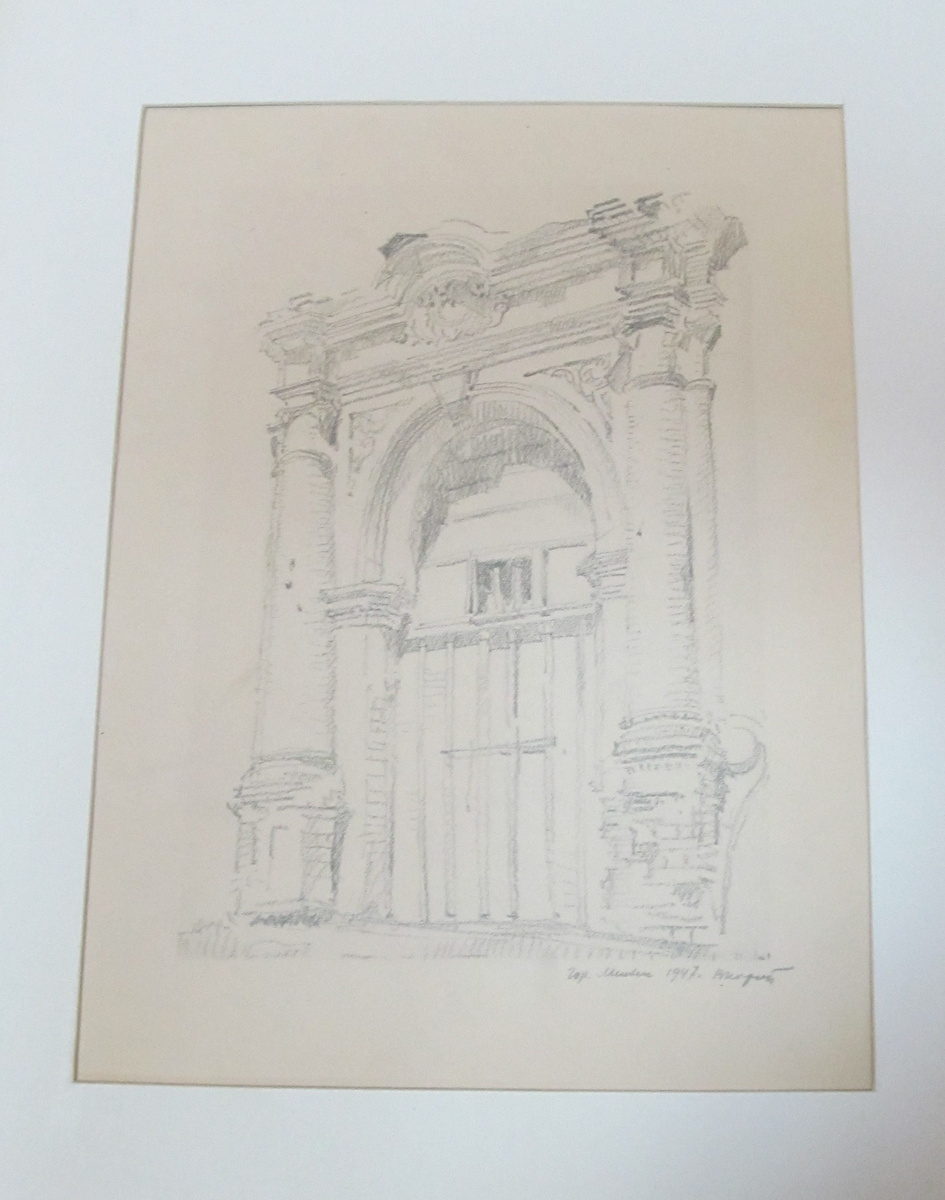 Коллекция графических рисунков была создана им в конце 1940‑х годов. Многие документы и графические рисунки передали архиву его жена и дочь. 15 работ, выполненных на добротном ватмане размером 30 х 20 сантиметров. Закономерность это или случайность, но на них запечатлены те архитектурные памятники, которые в последующие тридцать лет были снесены.
