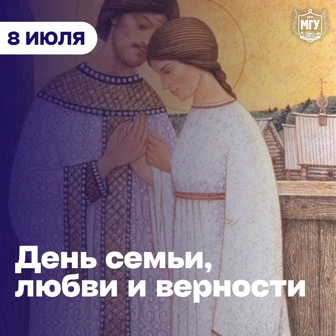 ❤️8 июля — День семьи, любви и верности 👐Семья — одна из главных ценностей в жизни каждого человека. Сегодняшний день напоминает нам о том, как важно беречь близких, дарить им любовь и поддержку. 🕊В народе покровителями семьи и брака считаются супруги Петр и Феврония Муромские. Их любовь и верность друг другу до сих пор является примером семейных отношений. 🎉Пусть этот праздник станет хорошим поводом провести время с семьей и близкими, вновь выразить им свою любовь и благодарность. В честь праздника предлагаем пройти тематическую викторину⤵️ #МГУимениКуинджи #ДеньСемьиЛюбвиИВерности