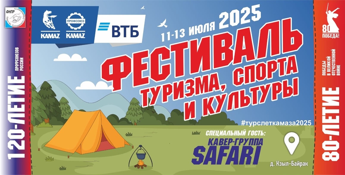 С 11 по 13 июля пройдет ежегодный Фестиваль туризма, культуры и спорта ПАО «КАМАЗ» - 2025. Мероприятие, организованное ОППО ПАО "КАМАЗ" при поддержке банка «ВТБ», будет посвящено двум значимым датам: 120-летию профсоюзов России и 80-летию Победы в Великой Отечественной войне.
