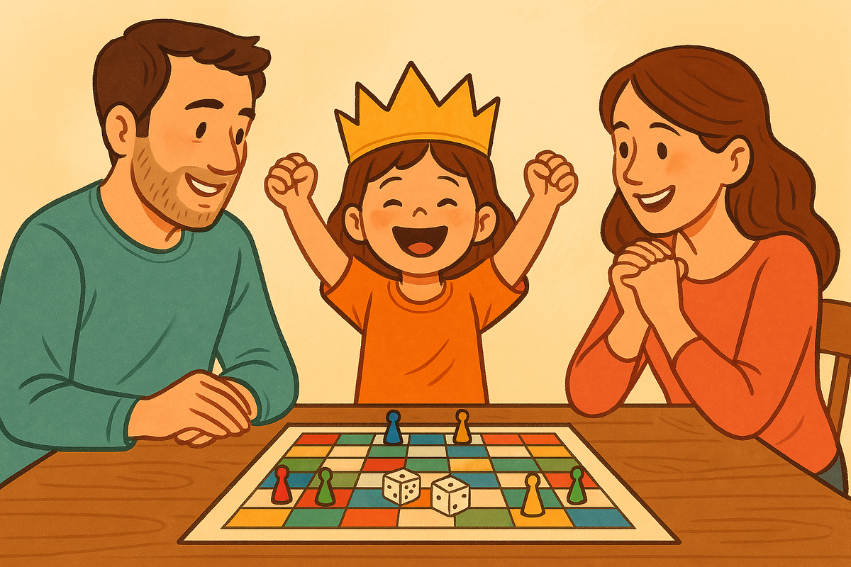 Игра — это не просто развлечение для детей. Это способ познания мира, самовыражения, а главное — развитие уверенности. Когда родители играют с ребёнком, они создают не только весёлое времяпрепровождение, но и эмоционально значимую среду. В ней ребёнок учится понимать, что он способен на многое. 🌱 Формирование уверенности - Победа придаёт веру в себя. Когда ребёнок выигрывает у взрослого, у него складывается ощущение: “Я могу! Я сильный! Я умный!” - Это безопасная зона успеха. В реальном мире ребёнка часто подстерегают трудности — проигрыши, ошибки, критика. Победа дома помогает уравновесить это. 💞 Эмоциональная близость - Вместе смеяться и радоваться — бесценно. Победа даёт повод для искренней радости, которую родители разделяют с ребёнком. - Ребёнок чувствует, что его ценят. Когда взрослый принимает поражение с улыбкой, ребёнок понимает — он важен не только за успехи, но сам по себе. 🧠 Развитие мотивации и инициативы - Победа побуждает повторять действия, которые привели к