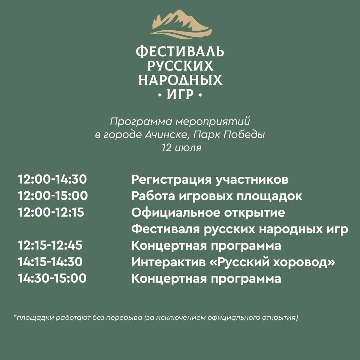 В рамках Фестиваля русских народных игр состоятся соревнования по русской лапте. 📌 Регистрация команд открыта до 10 июля 2025 года по ссылке. С правилами игры, можно ознакомиться ниже👇 По результатам соревнования победители примут участие в итоговом турнире с командами-финалистами из других городов края в г. Дивногорске. Напомним, фестиваль также пройдёт: 20 июля - в Норильске 26 июля - в Канске 16 августа - в Минусинске 6 сентября - в Лесосибирске 20 сентября - в Дивногорске. Ждём вас 12 июля в 12:00 в парке Победы. Будет интересно! 😉