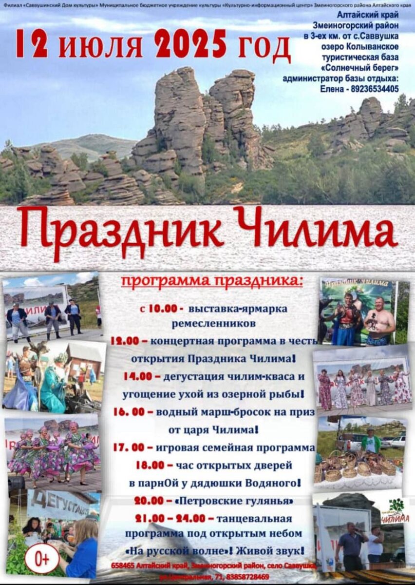 Совсем скоро в Змеиногорском районе - праздник Чилима! Этот праздник в нашем районе появился всего несколько назад, но стал быстро популярным как среди жителей округа, так и у его гостей.Он проходит на берегу реликтового Колыванского озера в селе Саввушка. В этот день (12 июля) ко всем, кто становится участником праздника из вод озера приходят Царь-Чилим и его подданные.А еще, всех тех, кто приедет на праздник Чилима, ждут интересные спортивные, концертные и гастрономические программы! Приезжайте, будет интересно! Справка: чилим, рогульник плавающий, водяной орех, реликтовое растение, сохранившееся на нашем Колыванском озере с доисторических времен.... Ссылка на публикацию #праздник