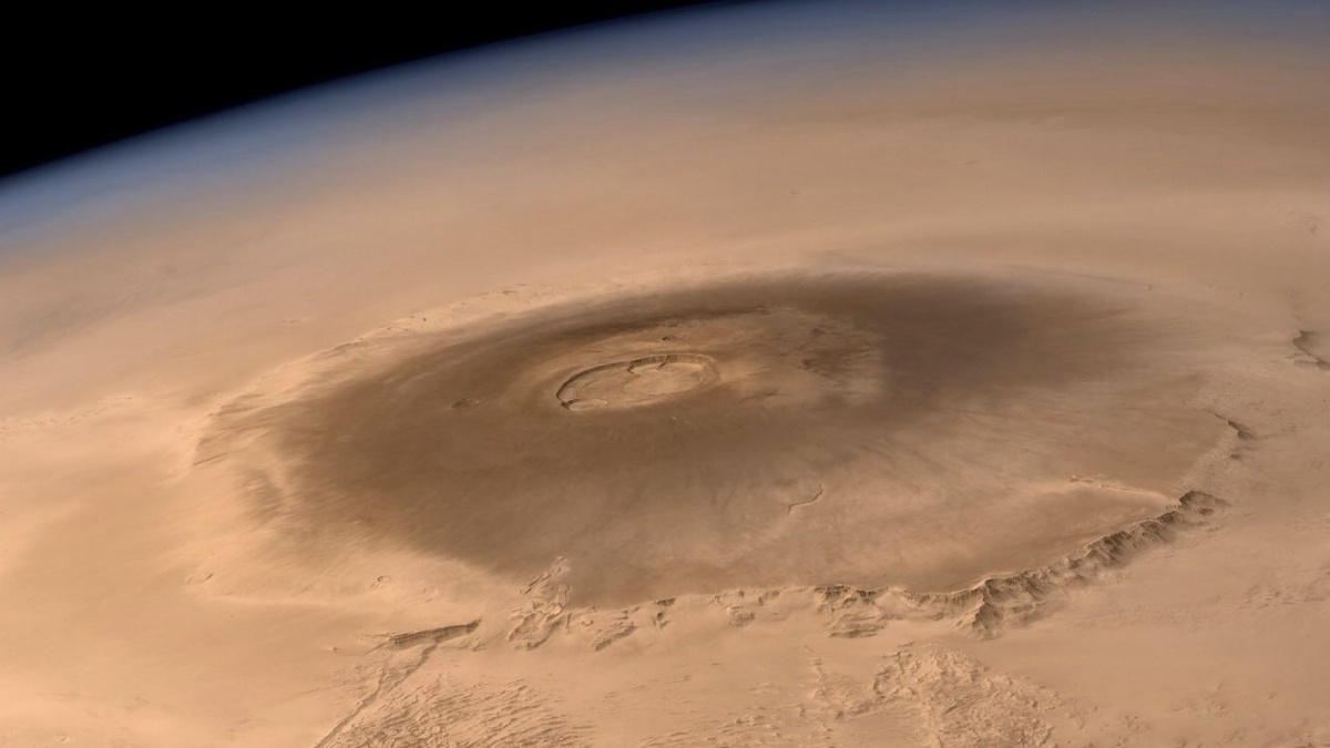 То есть, если вы идете к вулкану по Марсу, то в один прекрасный момент упираетесь в его подножие – непреодолимую стену высотой до 7 км, которая тянется на сотни километров. Как образовался этот обрыв – неизвестно, но предполагают, что вулкан омывал океан. А на вершине Олимпа – уже практически вакуум, она в космосе.