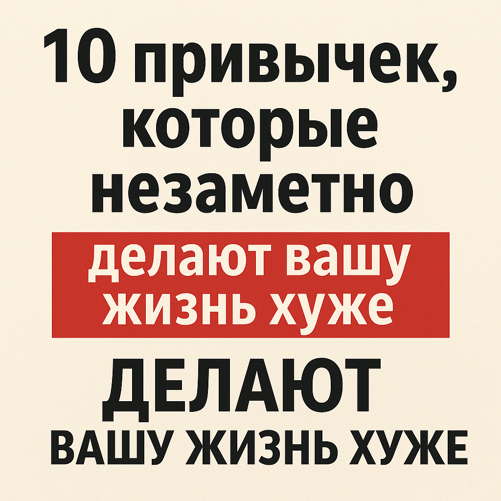Мы часто думаем, что плохое самочувствие, апатия или отсутствие мотивации связаны с внешними обстоятельствами: работой, стрессом, недостатком денег или плохой погодой. Но на деле корень проблем — в том, что мы делаем каждый день. Причём часто — автоматически, даже не замечая. Вот 10 привычек, которые кажутся мелочами, но изо дня в день делают жизнь хуже. В конце статьи — практические советы, как их заменить. 1. Проверка телефона сразу после пробуждения Первое, что делает большинство — берёт в руки телефон. Сообщения, соцсети, новости, мемы, YouTube… Что происходит: мозг получает резкий поток информации, часто негативной или ненужной. Это сбивает гормональный фон, портит настроение и разрушает внутреннюю тишину, с которой должен начинаться день. Что делать вместо: начни утро с дыхания, воды, дневника или даже просто молчания. Телефон — спустя 30 минут. Это изменит твой день кардинально. 2. Прокрастинация под видом «передышки» «Сейчас чуть-чуть отдохну…» — и пошло: ролики, Tik
