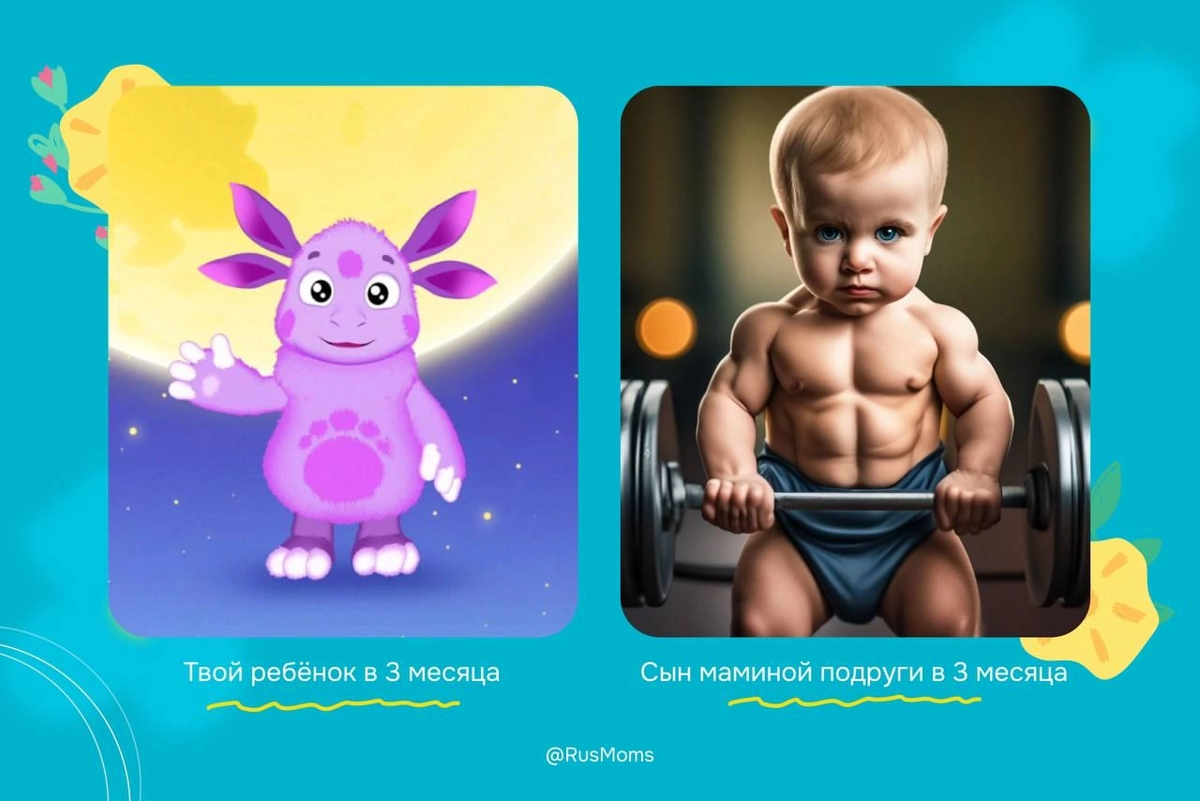 Только представьте: на третьем месяце беременности (примерно 12 недель) вы только встали на учет в женской консультации. А в возрасте трех месяцев ваш малыш почти или уже удвоился в весе с рождения! Ваш киндер стремительно растет и набирает в весе. Носить малыша все тяжелее: руки начинают отваливаться, спинка тоже говорит «спасибо». Вероятнее всего, на весах вы уже перевалили за отметку в 5 килограмм. У вас уже сделаны первые дозы прививок против туберкулеза, гепатита B, пневмококка, а у самых продвинутых еще и от ротавируса (примечание от меня: было бы здорово сделать пост про прививку от ротавируса, многие мамы про неё не знают и очень жалеют об этом потом). На подходе прививки против коклЮша, дифтерии, столбняка, гемофильной инфекции, полиомиелита. Так называемый четвертый триместр подходит к концу, ребенок перестает напоминать инопланетянина)) Перед вами Человек! 🔥Небольшой чек лист того, что должен уметь ваш ребенок в этом возрасте: 📌Двигательные навыки - Малыш