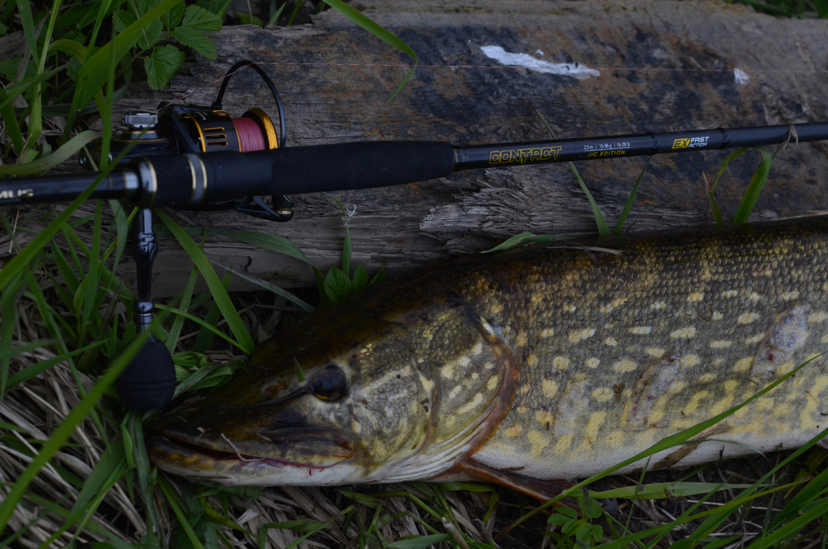 Maximus Contact Jig длиной 2.5 метра при отсутствии кустов и веток был весьма удобен, позволяя делать проводку вдоль подмытого берега. Сначала на резину бросился шнурок грамм на 500, которого Contact даже не заметил, как закинул на берег. В финале была полторашка, с которой тоже не возникло заминок при вываживании.