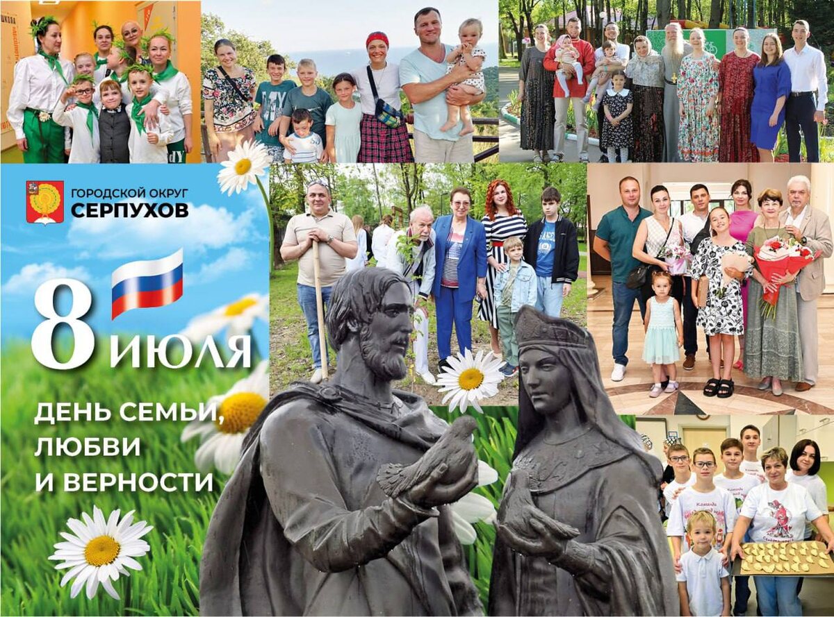 Сегодня мы празднуем День семьи, любви и верности. Этот праздник – отличный повод для укрепления семейных уз, для выражения любви близким и родным. Серпухов гордится своими дружными семьями! И с каждым годом растёт их число, множатся достижения и вершатся новые добрые дела. Знакомьтесь с нашими дружными семьями на нашем сайте. С праздником!