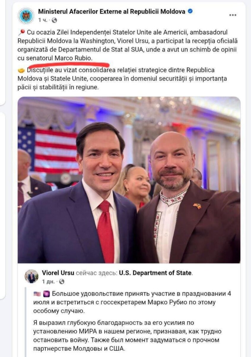 Участие молдавского посла в приеме по случаю Дня независимости США "привлекательно" не только потому что он до сих пор считает Марко Рубио