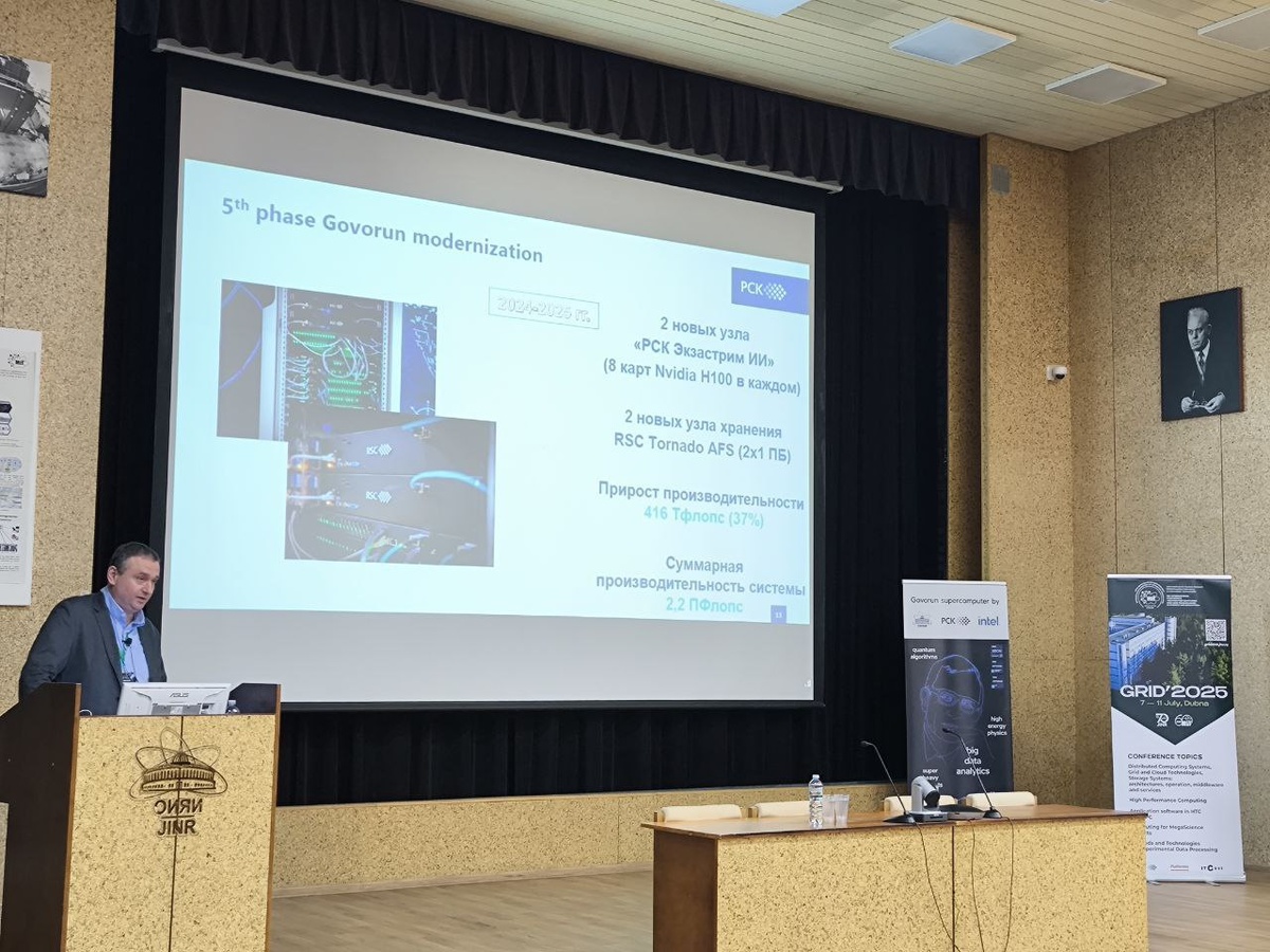 Специалисты группы компаний РСК совместно с Лабораторией информационных технологий им М.Г. Мещерякова Объединенного института ядерных исследований (ЛИТ ОИЯИ) завершили новый этап модернизации суперкомпьютера «Говорун». Вычислительные ресурсы этой системы были расширены за счет двух узлов на базе нового серверного решения «РСК Экзастрим ИИ» c 8-ю графическими ускорителями NVidia H100 в каждом и прямым жидкостным охлаждением. Новые сервера уникальны и были сконструированы и изготовлены для СК «Говорун». При этом пиковая производительность ГПУ компоненты суперкомпьютера «Говорун» выросла на 36% и достигла 1,4 Петафлопс (в операциях с числами с двойной точностью), а пиковая суммарная производительность всего суперкомпьютера теперь составляет 2,2 Петафлопс.