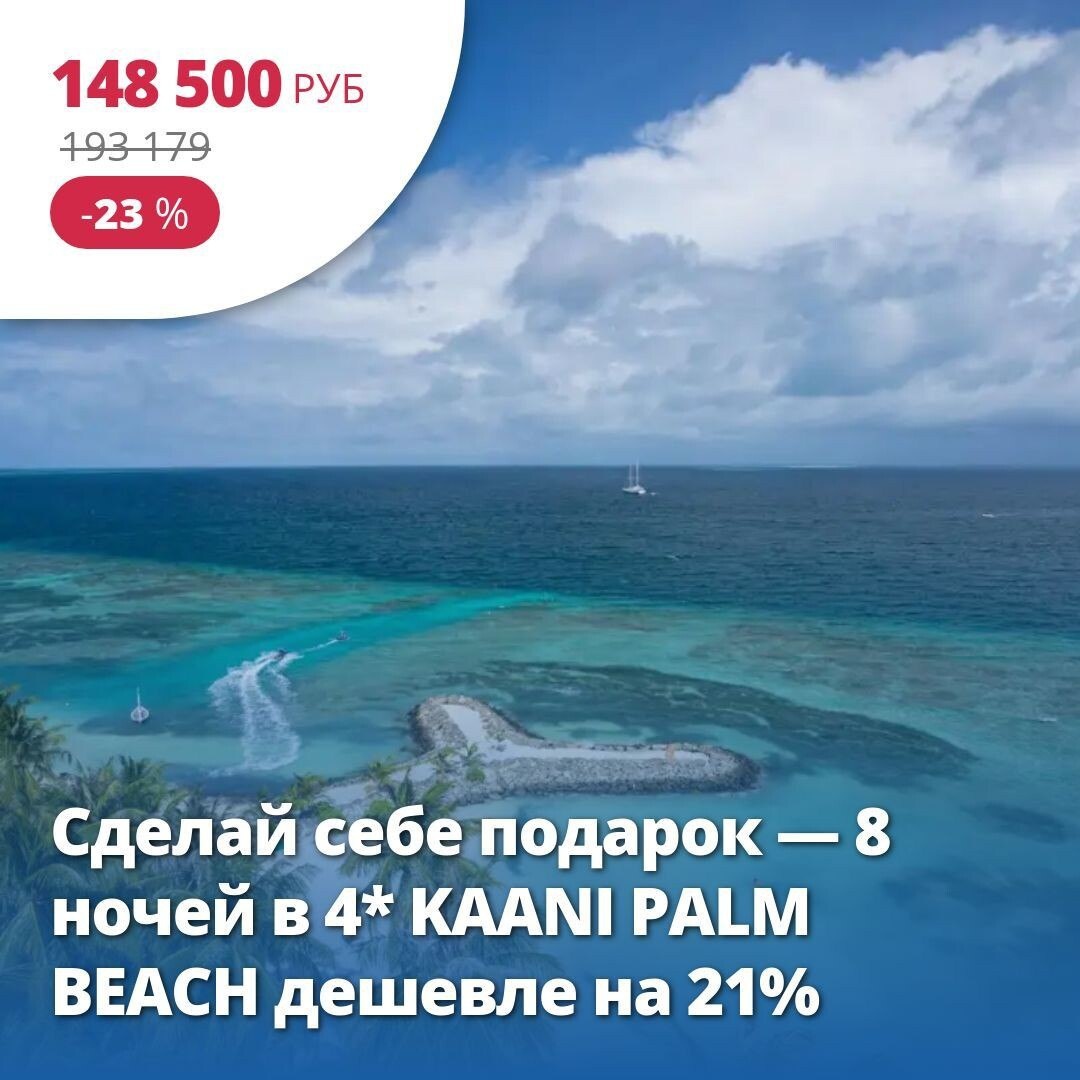 🔥 Цена тура: 148 500 руб/чел ❤️ Сделай себе подарок — 8 ночей в 4* KAANI PALM BEACH дешевле на 21% 🏠 4*, Мальдивы из Москвы 31 июля на 8 ночей, Завтрак. KAANI PALM BEACH 4* Отель расположен на острове Маафуши, в нескольких шагах от пляжа Бикини. Для гостей — ресторан, общий лаундж, частный пляж. По утрам для гостей сервируется завтрак. В районе отеля популярны велосипедные прогулки. Теплое море и бескрайние пляжи скучают без Вас Подробнее здесь: https://starttime.ru/search-tours?tvcard=7rm872 Лучшие туры https://starttime.ru/search-tours #СтартТайм #ЛучшийТур