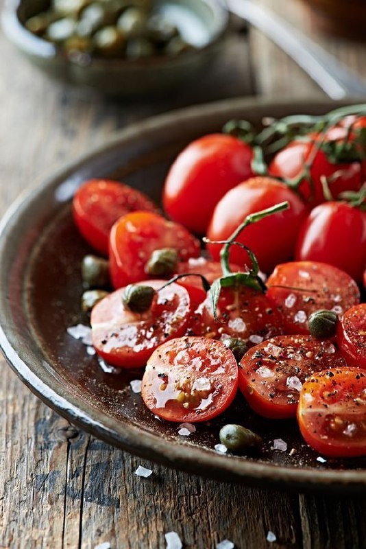 Томатно-красный и лиственно-зелёный - это палитра, построенная на дополнительном контрасте. Броская, сочная, она привлекает вкус и летнее изобилие. Дополнить цветовую гамму можно серым и бежевым.