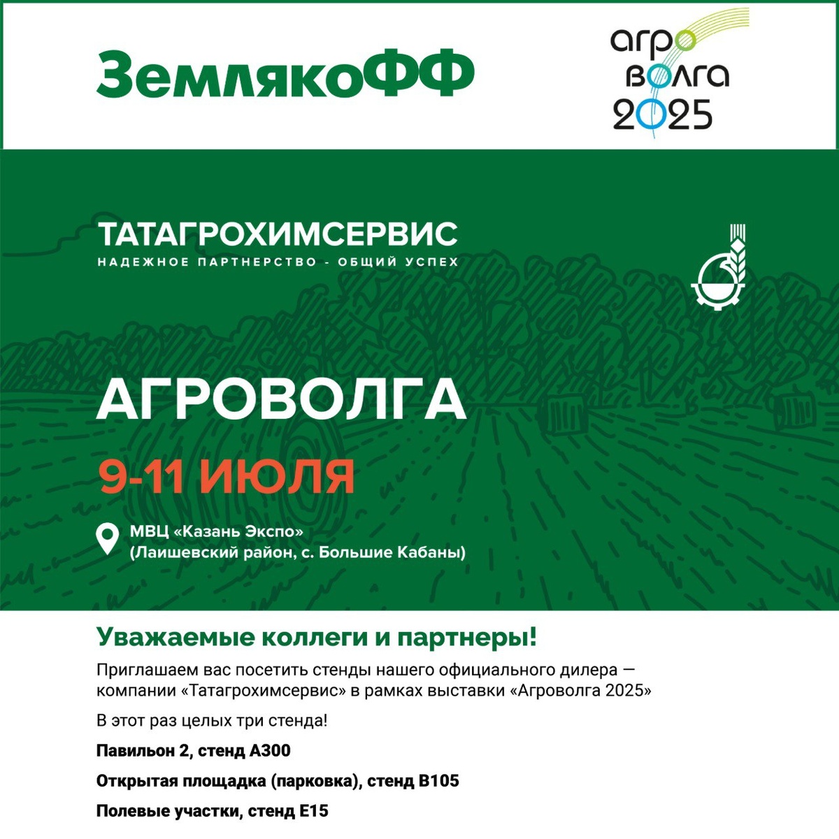 Приглашаем посетить стенд нашего дилера – Татагрохимсервис на «Агроволге-2025