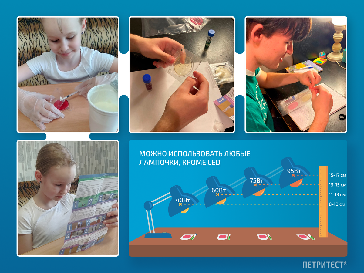 У нас есть отличная идея! Экспресс-тесты Петритест® — это не только для лабораторий и производств, но и замечательный способ познакомить детей с микробиологией на практике. Они могут изучать окружающий мир как настоящие исследователи. Никаких варок, стерилизаций и сложных приготовлений — просто откройте, нанесите пробу и наблюдайте. Всё готово к исследованию! Чтобы ускорить процесс роста, тест можно “термостатировать” под обычной лампой, подойдёт любая, кроме LED. А тест на грибы и дрожжи вообще не нужно термостатировать! Скоро школа — дайте детям возможность увлечься наукой уже сейчас. Заказывайте наборы и проводите настоящие опыты дома или в летнем лагере: OZON: Экспресс-тесты Петритест®