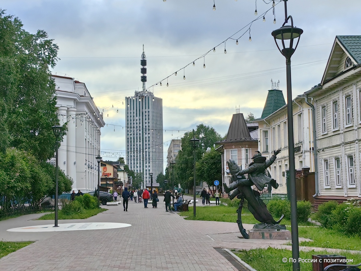 Памятник «Архангельскому мужику» Сене Малине – это одна из самых известных и при этом весьма неоднозначных скульптур в Архангельске. Он расположен на Чумбаровке (официально – проспект Чумбарова-Лучинского), пешеходной улице в центре города. Мужик в ушанке верхом на огромной рыбе всегда привлекает внимание. Вот и я тоже на этот раз мимо не прошла. Этот колоритный персонаж, созданный Степаном Писаховым, стал символом народного северного юмора и фантазии. Давайте разберём его образ подробнее: Вымышленный герой из цикла сказок Писахова, действие которых происходит в деревне Уйма (под Архангельском). Весёлый балагур и любитель придумывать необычные истории, который превращает обычную жизнь в невероятные приключения. Его прототип – реальный житель Уймы Семён Михайлович Кривоногов по прозвищу «Малина». Умелый охотник, рыбак и маляр. «Апельсиново дерево» – выросло посреди Северной Двины. «Налим Малиныч» – домашняя рыба, живущая в конуре. «Морожены волки» – которые тают на солнце. «Лёд на