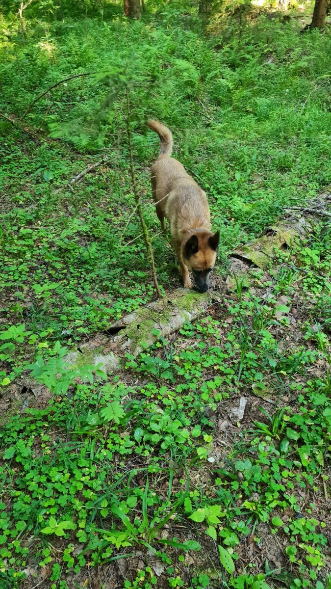 С собаками в лесу.