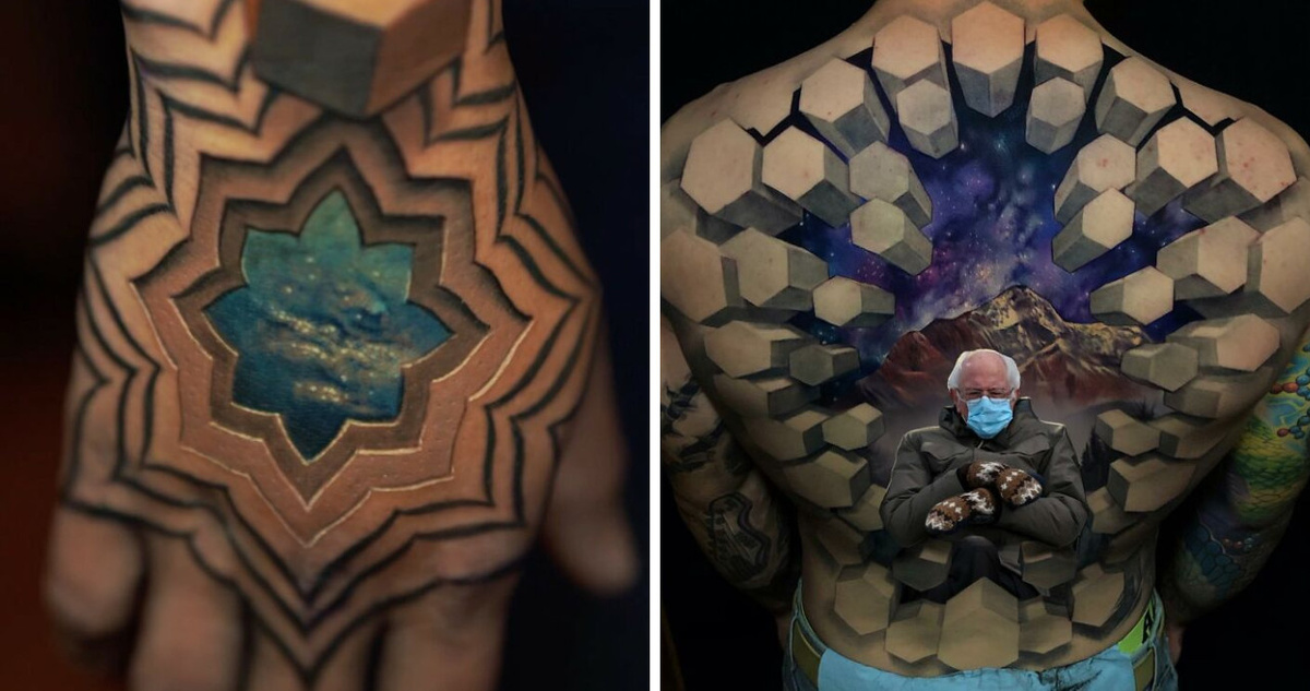 Это не просто татуировки — это оптические иллюзии, при взгляде на которые мозг сначала подвисает, а потом спрашивает: «Это точно реально?» Джесси виртуозно использует геометрию, тени и перспективу, превращая человеческое тело в оживающий арт-объект. Иногда кажется, что если надавить на рисунок — он начнёт вращаться, засасывать или хотя бы заиграет звёздной пылью. Сам художник говорит, что вдохновляется идеей глубины — как физической, так и философской. Он видит тело не как холст, а как портал, через который можно передать ощущение космоса, бесконечности и даже немного тревожной фантастики. Готовы ли вы взглянуть внутрь?