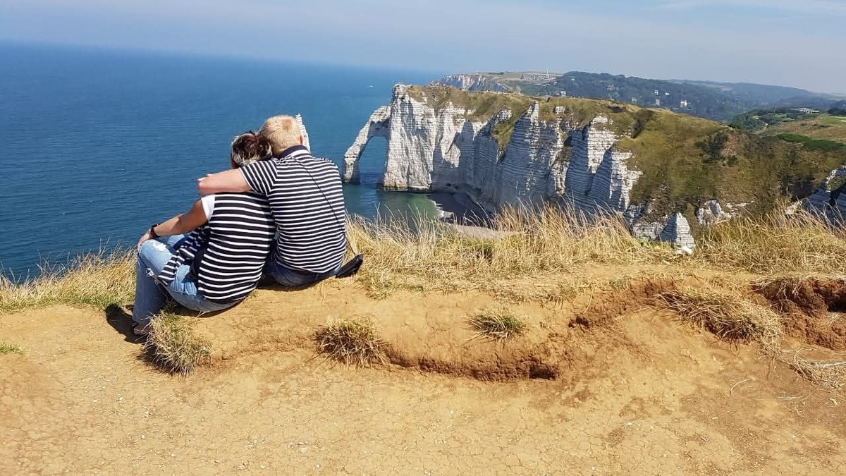 Много лет назад во Франции, в Этрета нас сфотографировал мимопроходящий француз, а мы и не заметили 😌