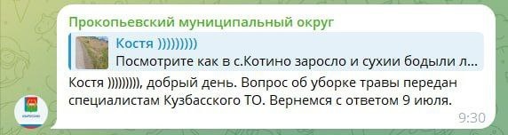 Илья Середюк недоволен ответами органов власти в комментариях. После аппаратного совещания губернатор лично зашел в комментарии своего Telegram-канала и обратил внимание на реакцию представителей муниципалитетов. Например, он прямо поручил администрации Прокопьевского муниципального округа разобраться с вопросом уборки травы — сегодня же, а не "устраивать футбол". Подписчики канала положительно отреагировали на комментарий губернатора. ✍✍✍ТУТ✍🗞🗞ЗДЕСЬ🗞 ⚡️BOOST КАНАЛА⚡️