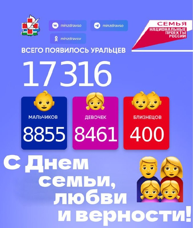В Свердловской области за 6 месяцев 2025 года родилось 17316 малышей! 8855 мальчиков и 8461 девочка, в том числе 198 пар близнецов, среди которых четыре тройни. Больше всего родов приходится на долю свердловчанок в возрасте 25-35 лет — 8605, от 35 до 40 лет — 3645, старше 45 лет — 61 роды. Первенцы появились у 6837 женщин, второй ребёнок родился у 5403 уралочек, третьим малышом пополнились 3119 семей. Восемь женщин стали мамами в десятый раз и более. @zg66