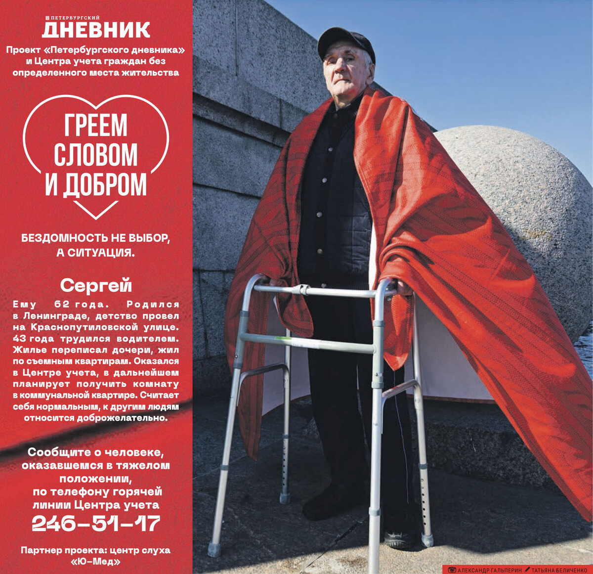 «Петербургский дневник» совместно с Центром учёта граждан без определённого места жительства продолжает свою акцию «Греем словом и добром». В этот раз петербуржцам рассказали о 62-летнем жителе Северной столицы Сергее.