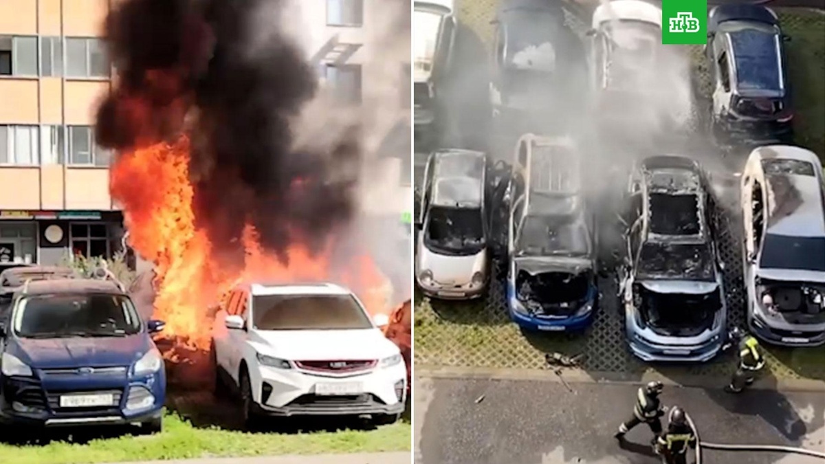 [ Смотреть видео на сайте НТВ ] В оперативных службах рассказали, из-за чего сгорели автомобили на Бескудниковском бульваре. Столичное управление МВД России назвало причину пожара, охватившего девять машин на севере Москвы. По предварительным данным, огонь вспыхнул из-за короткого замыкания электропроводки. Расследование ЧП продолжается. Утром 8 июля на парковке на Бескудниковском бульваре загорелся «Форд». Пламя перекинулось на восемь других автомобилей, стоявших рядом. Взрывов не было, но раздавались хлопки, характерные для возгорания машины, отметили в полиции. По материалам: ТАСС. [ Смотреть видео на сайте НТВ ]
