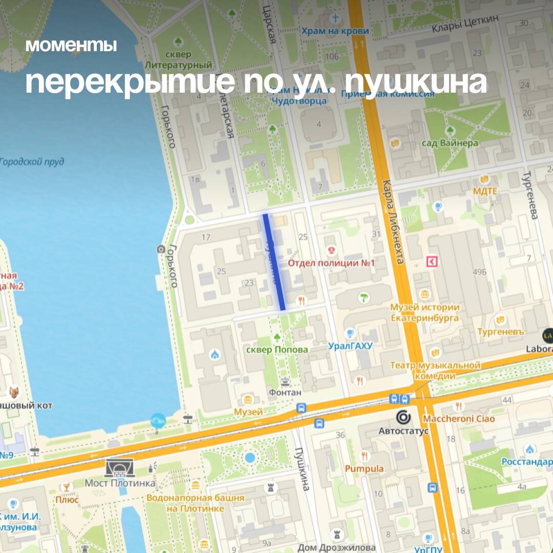 Екатеринбург ожидает новое перекрытие. В центре города с 21 июля по 31 августа закроют движение транспорта по улице Пушкина в районе дома №2 на Первомайской. В этом месте будут проводить работы по прокладке инженерных сетей. Автомобилистам предлагают объезд по улицам Горького, Почтовой и Толмачева. Схемы движения общественного транспорта останутся прежними. Подписаться 🔸 Обсудить