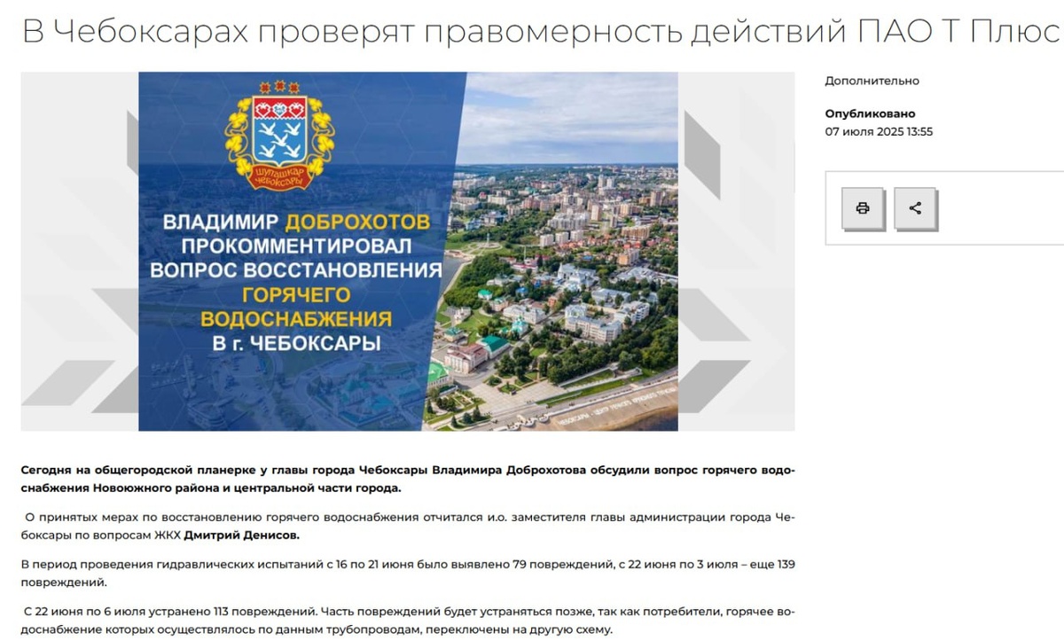 Благодаря нашей с вами активности, в мэрии Чебоксар пришлось публично реагировать на беспредел, творящийся в городе с горячей водой
