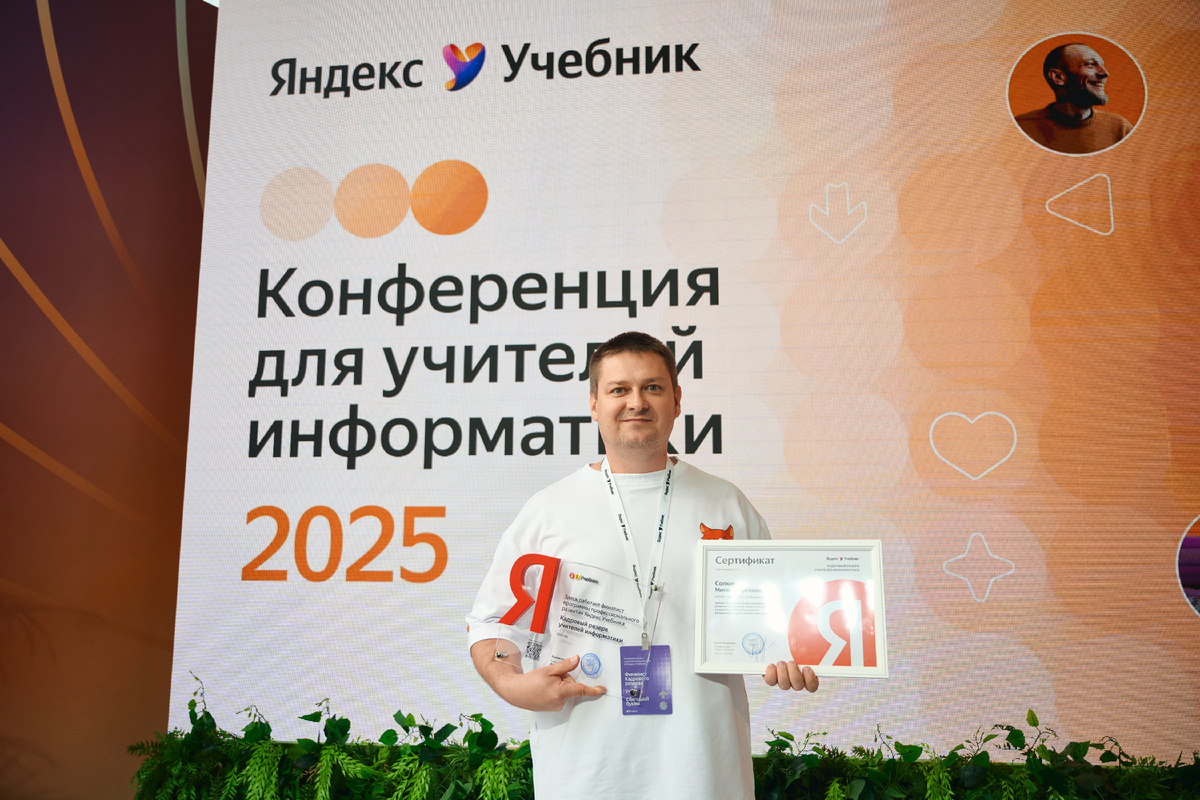 6 июля на конференции «Яндекс Учебника» подвели итоги премии для педагогов, преподающих ИТ-дисциплины. В конкурсе приняли участие более 20 000 учителей со всей России — победителями стали 20 лучших. Сервисом «Яндекс Учебник» сегодня пользуются свыше 10 000 педагогов. Он предоставляет более 100 000 интерактивных заданий с практикой и объяснением теории — и помогает учителям развивать цифровую грамотность у школьников. Победители премии Удалось войти в состав кадрового резерва и получаю награду из рук руководителей Яндекс-учебника: Дмитрия Кононова и Елены Краевской: Нужно отметить, что само участие было интересным и полезным - я просто вед уроки с помощью Яндекс-учебника и участвовал в активностях, предложенных организаторами. Это и курсы повышения квалификации, и всякие опросы, способствующие развитию платформы. В общем, вошел в пятерку лучших по стране и получил возможность присутствовать очно на конференции учителей информатики 5-6 июля. Это бесподобно! Познакомился с прекрасными лю