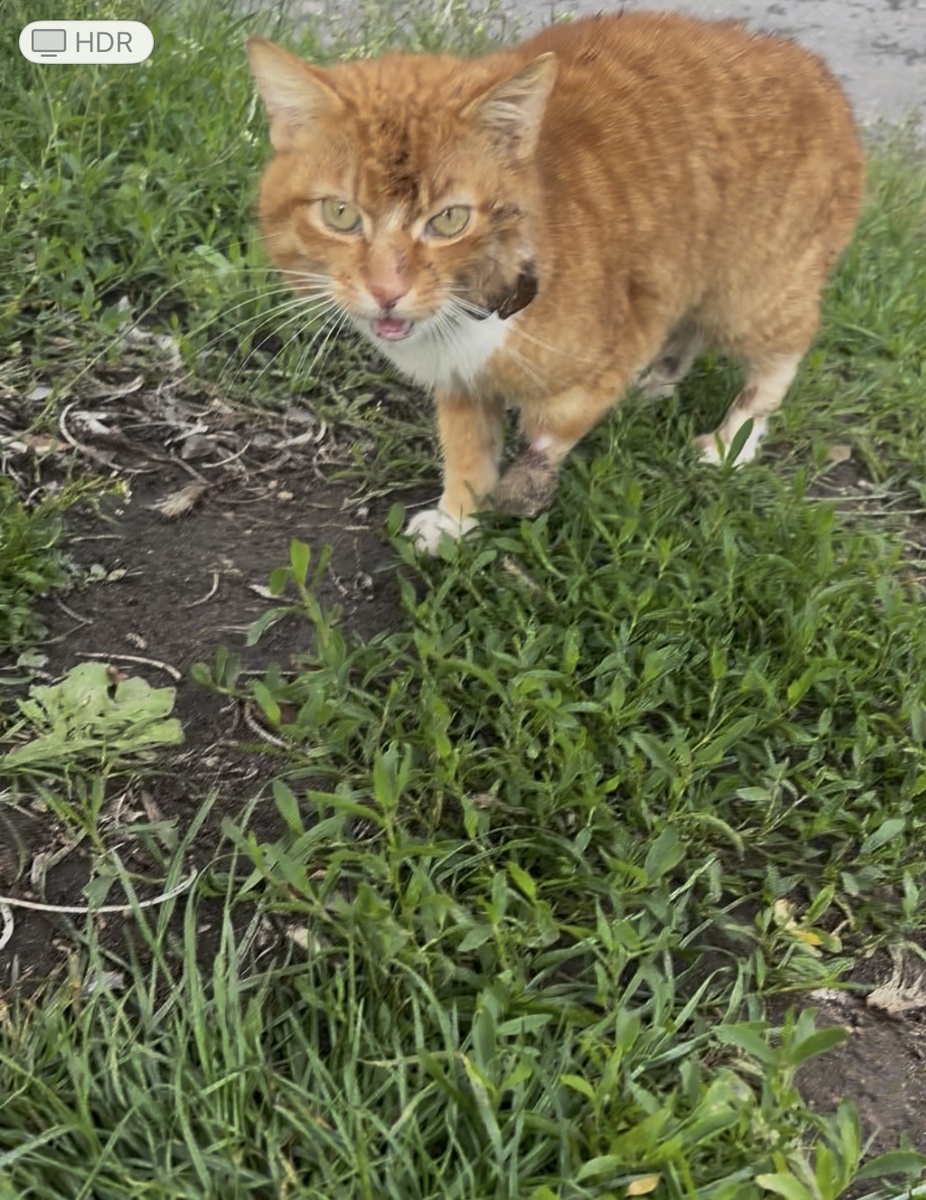Пока ждала Слепышарика с операции, позвонила женщина, которая и попросила его забрать с улицы. Сказала, что пришел рыжик (тот самый, у которого нет лапы, и за которым я гоняюсь уже несколько месяцев). Лапа сама не заживает (похоже, что он попал в капкан) и он пытается опираться на остатки косточки, из-за чего лапка постоянно кровит. + Кто-то выдрал ему часть щеки. Бедный кото-ребенок...