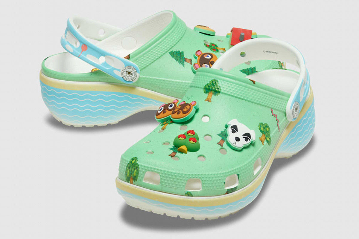 Nintendo совместно с обувным брендом Crocs представили совместную коллаборацию, вдохновлённой франшизой Animal Crossing. Дизайн новых «кроксов» напрямую связан с расслабляющей атмосферой Animal Crossing, используя яркую и пышную зелёную цветовую палитру и дополнительно отражая морские мотивы на элементах подошвы и ремешков. Обувь будет доступна в двух вариантах: Animal Crossing Platform Clog для взрослых и Animal Crossing Classic Clog для детей. В рамках коллекции будут выпущены уникальные джиббитсы с героями из Animal Crossing — это Рози, Маршал, Банни, а также сестры Мэйбл, Лейбл, Сабл и т. д. Продажи новой коллекции стартуют с 26 августа.