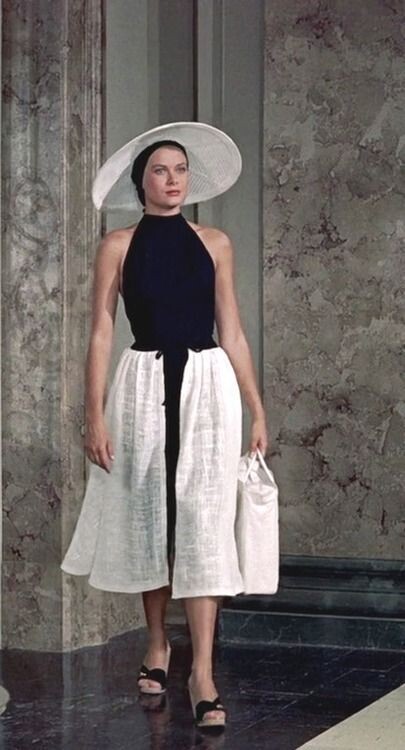 В 1950-х годах в моду вошло любопытное сочетание юбки и брюк. Возможно, вы помните пляжный костюм Грейс Келли в фильме "Поймать вора".