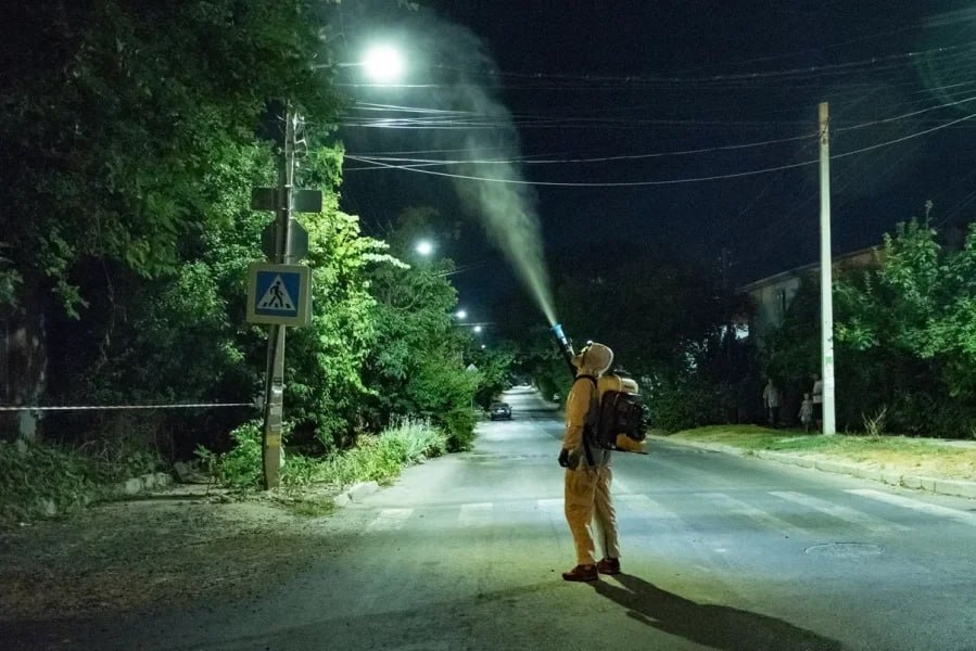 Ночью в Севастополе обрабатывают деревья от вредителей