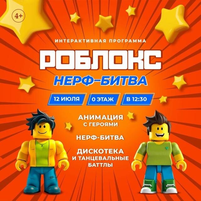 Грандиозная «Нерф-битва» в стиле Роблокс 🗓 12 июля 💸 бесплатно 📍 Щелковское ш., 75, 0 этаж Готовы к миссии? Это не просто игра — это испытание на ловкость, смекалку и командный дух! В программе: 12:30 – 13:30 — Знакомство с героями Роблокс + интерактивные испытания на большом экране ️13:30 – 14:30 — Главное событие: Нерф-битва Вас ждет: • Разведка территории и инструктаж по технике безопасности; • Обучение и сборка/разборка бластеров; • Полоса препятствий; • Командные сражения: «Захват флага» и «Королевская битва». 🪩14:30 – 15:30 — Дискотека и танцевальный баттл со всеми героями ➡️ ПОДРОБНОСТИ ⬅️ ❗️ Москва для детей