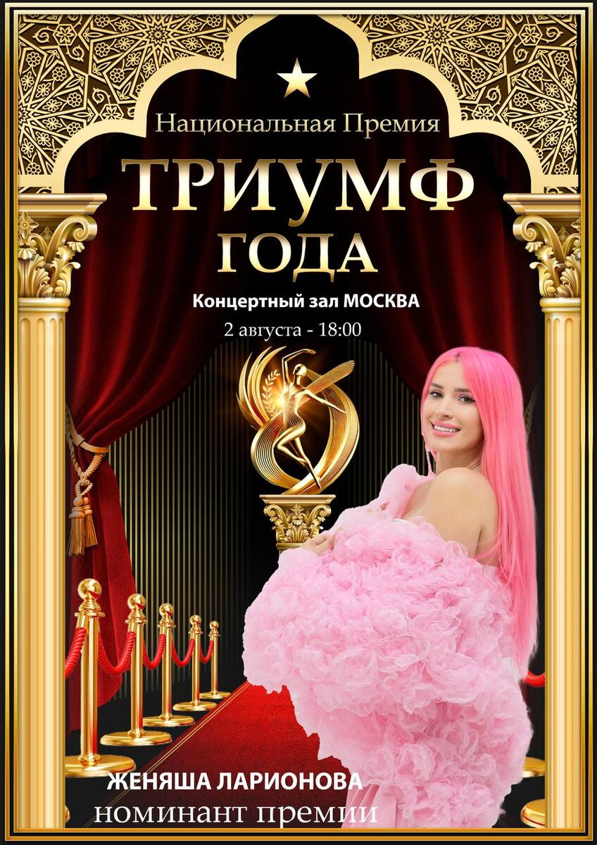 ✨ ОЧЕНЬ КРУТАЯ НОВОСТЬ! ✨ Кисули мои, я лечу к вам в Москву! 2 августа в Концертном зале «Москва» состоится грандиозное событие — Национальная премия «Триумф Года», и я… НОМИНИРОВАНА на награду! 💖 Это невероятные эмоции, море волнения и счастья! И я очень хочу разделить этот особенный вечер с вами. Жду всех 2 августа в 18:00— будет ярко, мощно и незабываемо! 🌟 Билеты уже в продаже: 👉 [https://moscow-hall.ru/events/839](https://moscow-hall.ru/events/839) Не пропустите — вместе мы устроим настоящий триумф! #ТриумфГода