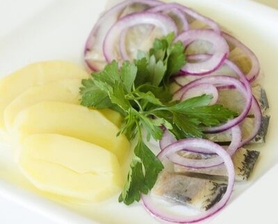 Можно смешать лук с рубленой петрушкой и укропом в равных пропорциях, тогда закуска станет ещё более ароматной.